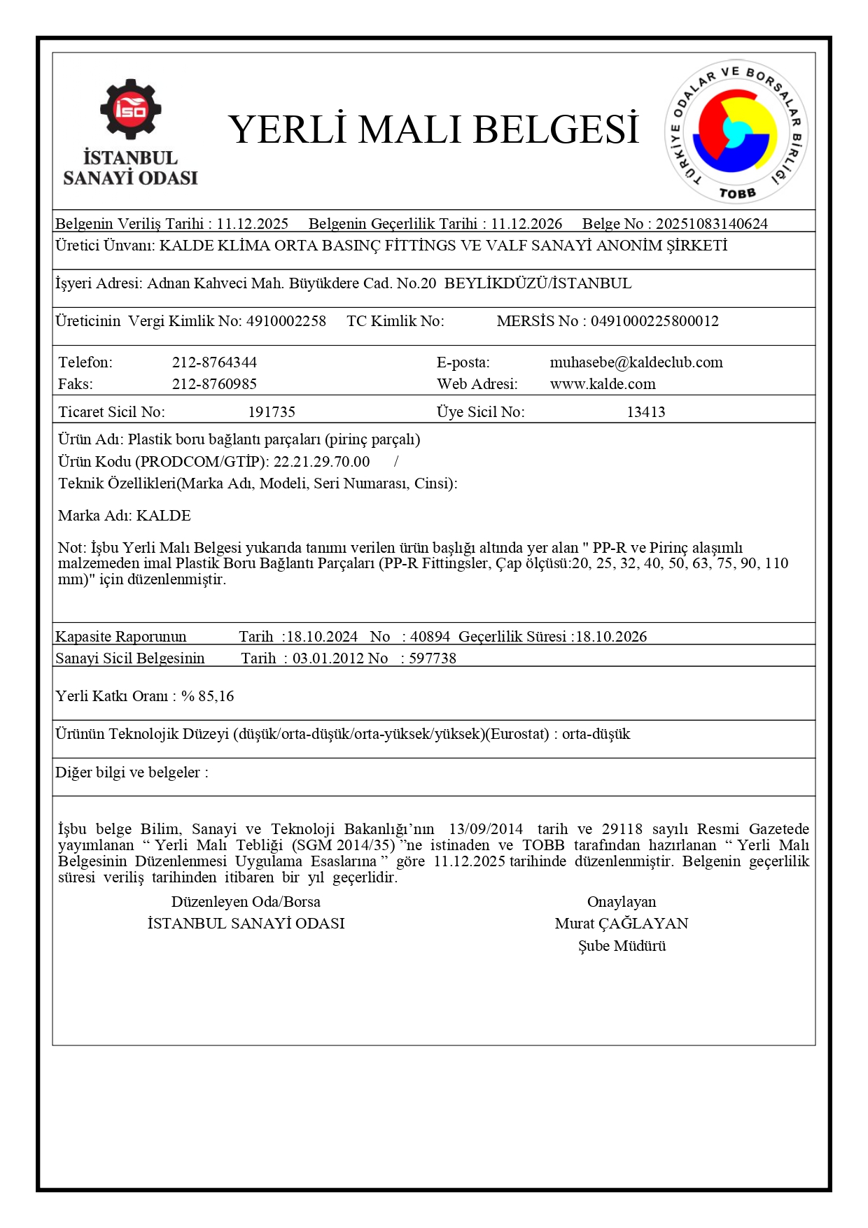 Yerli Malı Belgesi PVC Fittingsler