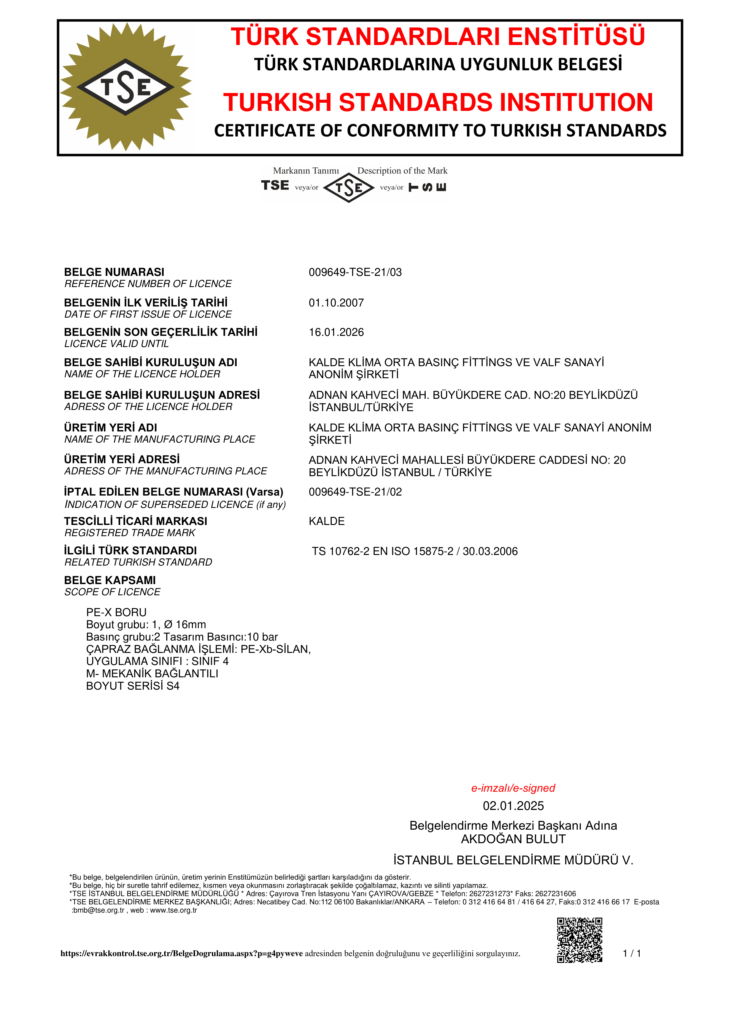 TS 10762-2 EN ISO 15875-2 PEX Borular