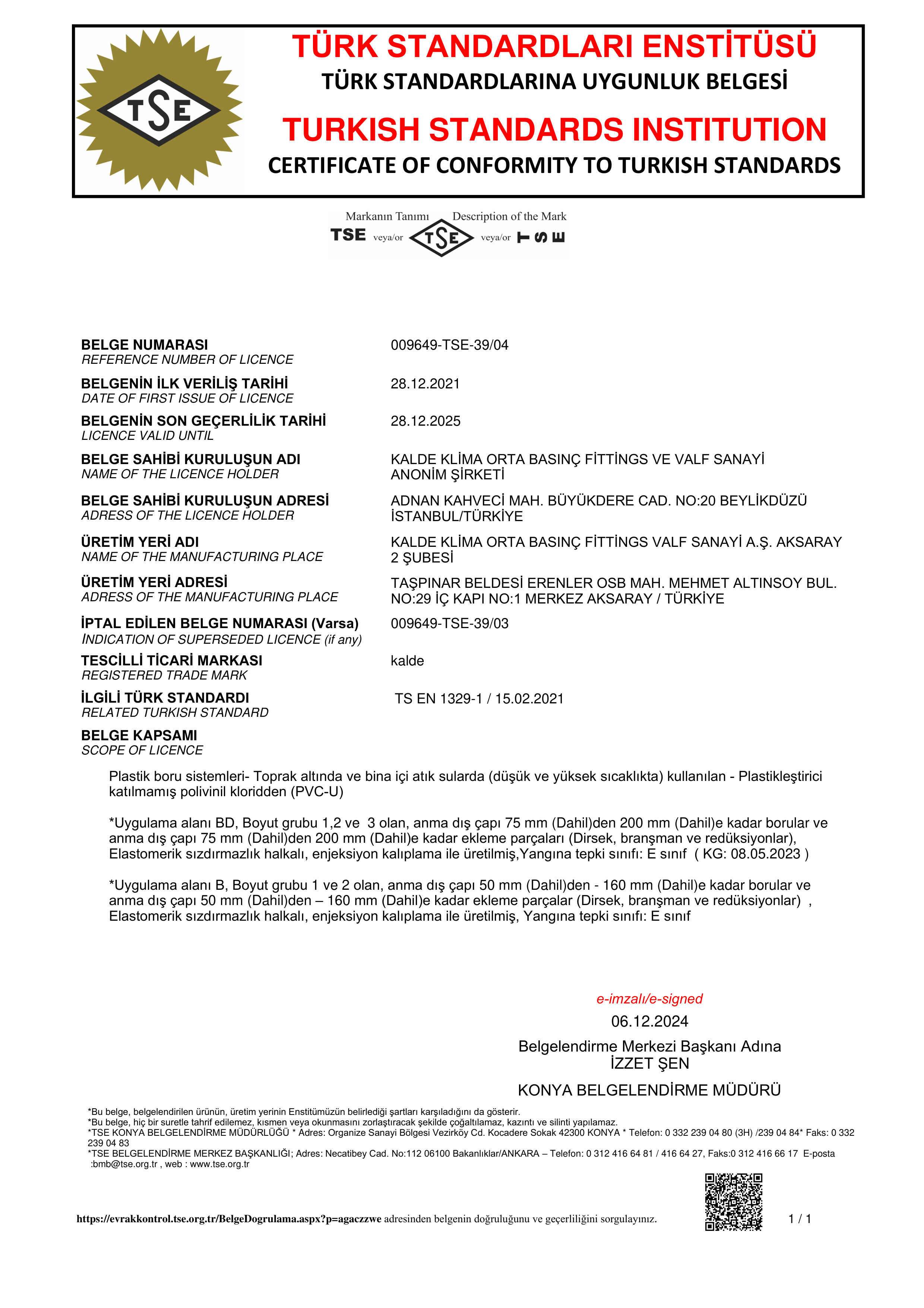 TS EN 1329-1 PVC-Uboru ve ekparçalar